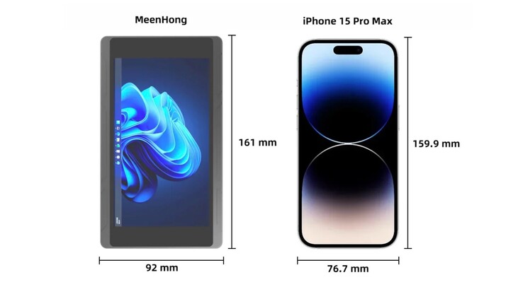 Der MeenHong JX05 könnte von vorne fast mit einem Smartphone verwechselt werden, denn mit Maßen von 16,1 x 9,2 Zentimetern ist der Mini-PC nur wenig größer als ein Apple iPhone 15 Pro Max (ca. 1.259 Euro auf Amazon), auch wenn der Mini-PC wesentlich dicker und mit 360 Gramm auch deutlich schwerer ist.