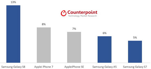 Laut einem aktuellen Marktforschungsbericht von Counterpoint dominierten Samsung und Apple den deutschen Smartphone-Markt im dritten Quartal 2017. Samsung verzeichnete bisher ein Jahreswachstum von rund 8 Prozent. Dank der sehr guten Absatzsituation in Deutschland erzielte Samsung hierzulande in Q3/2017 einen Marktanteil von 45 Prozent.