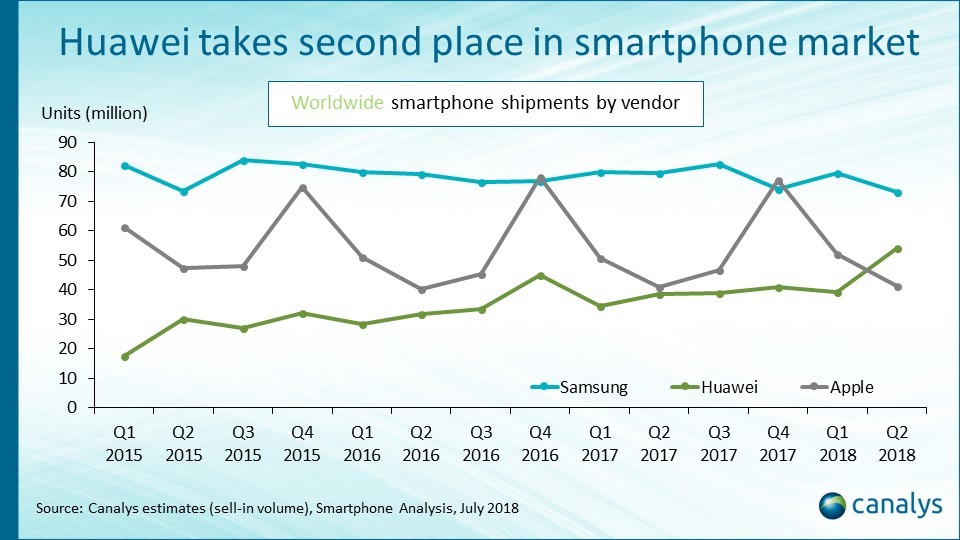 Als Wachstumstreiber identifizierte Canalys bei Huawei unter anderem die hohen Verkaufszahlen für die P20-Serie sowie die starke Performance der Konzerntochter Honor. Von den Handymodellen P20 und P20 Pro konnte Huawei etwa 7 Mio. Mobiltelefone absetzen. Huawei-Tochter Honor konnte nicht nur 16 Millionen Smartphones absetzen, sondern seinen Anteil am Gesamtvolumen aller ausgelieferten Huawei-Smartphones von 24 % in Q2/2017 auf nunmehr 36 % im 2. Quartal 2018 steigern.