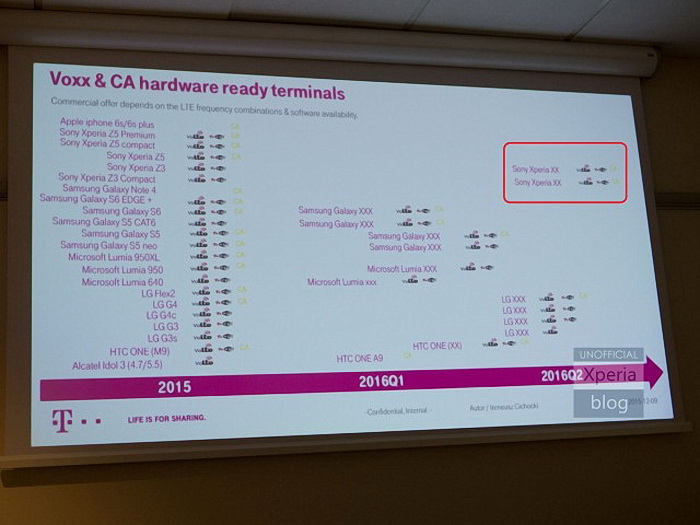 Die vier Neuheiten von LG will T-Mobile Polen gegen Ende Q1/2016 anbieten. Bisher lässt sich nur schwer abschätzen, welche neuen Phones wir hier sehen werden. Ein LG G5, das möglicherweise mit einem Snapdragon 820 ausgestattet ist, könnte vom Zeitrahmen her aber hier hineinpassen. Ferner listet der Mobilfunkanbieter für Polen auch zwei neue Microsoft Lumia Modelle und neben dem HTC One A9 ein weiteres Smartphone von HTC. Zwei kommende Xperia Smartphones von Sony listet T-Mobile Polen für Q2/2016.