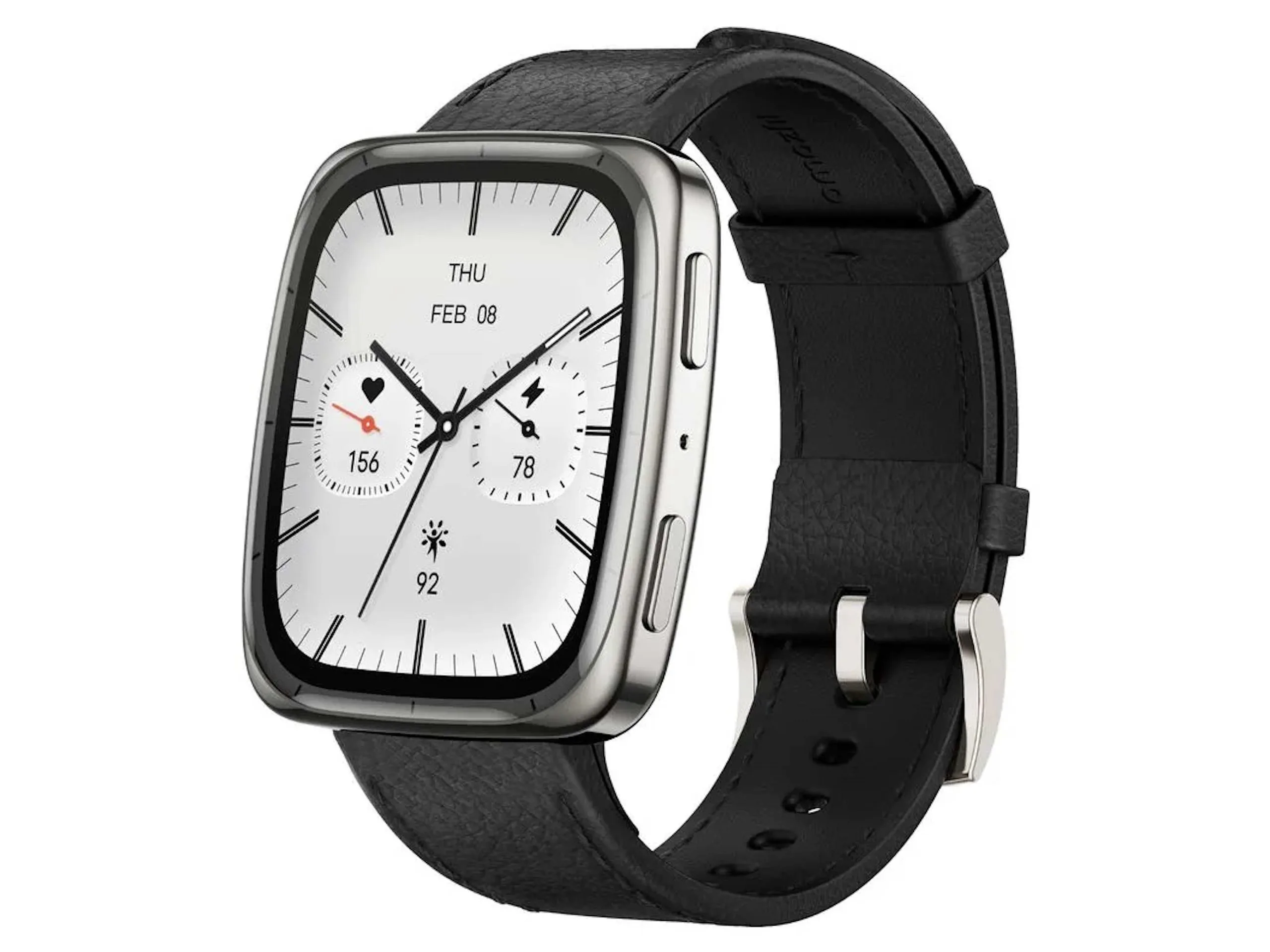 Zu sehen ist die Amazfit Active 2 Square Premium mit einem Lederarmband. Recht wahrscheinlich dürfte es die Amazfit Active 2 Square auch noch in einer Standard-Version ohne Lederarmband geben - das Lederarmband macht optisch natürlich etwas her, tendenziell könnte ein Silikon-Armband aber auf lange Sicht insbesondere gegenüber Schweiß weniger anfällig sein.