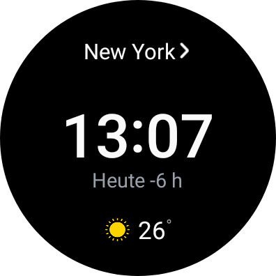 Dem neuen, von Google und Samsung gemeinsam entwickelten Wear OS 3.0 stülpt Samsung die Oberfläche OneUI Watch 3.0 über. An vielen Stellen bietet die smarte Uhr zusätzlichen Komfort. Im Rahmen des Tests können wir sie nicht alle aufzählen, daher nur oder wenigstens zwei Beispiele: Die Remote-Steuerung für die Smartphone-Kamera stellt zumindest in Verbindung mit dem verwendeten Samsung-Smartphone S21 Ultra ein scharfes Vorschaubild dar, während sich mit Ausnahme der Apple Watch viele andere Wearables auf einen Auslöser ohne Vorschaubild beschränken. Als zweites sei das Zeitzonen-Widget genannt, das über die Uhrzeit der betreffenden Zeitzone hinaus auch die Zeitverschiebung in Stunden, die Zeiten für Sonnenaufgang und -untergang und das Wetter vor Ort nennt, wie hierunter auf den letzten Screens zu sehen.