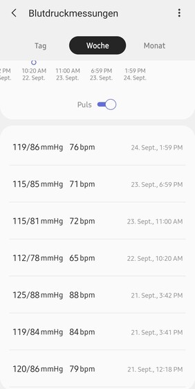 Die beiden folgenden Screens zeigen das Ergebnis unserer Tests (der Samsung Health Monitor links verwendet für die Uhrzeit die amerikanische Schreibweise). Da die Messungen jeweils mit, wenn auch geringem, zeitlichem Versatz erfolgten, können wir nicht unterstellen, dass Unterschiede auf das Verfahren zurückgehen. Der Abstand zwischen systolischem und diastolischem Blutdruck, ein wesentlicher Aspekt der Messung, weicht aus unserer Sicht nicht gravierend voneinander ab. Betroffene Nutzer bewerten das möglicherweise anders.