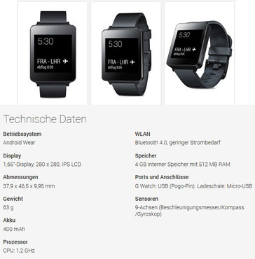 Technische Spezifikationen Smartwatch LG G Watch (lt. Hersteller):