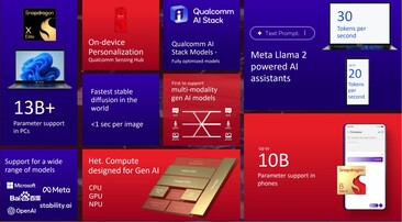 Die Neural Processing Unit soll im Vergleich zum Vorgänger um 98 Prozent an Performance zugelegt haben, der Always-On Low-Power Sensing Hub wird gleich um 3,5x schneller. Die speziell für multimodale, generative KI-Modelle optimierte Hexagon-NPU soll On-Device-AI derart stark beschleunigen, dass damit etwa das Erstellen von Bildern mittels Stable Diffusion in weniger als einer Sekunde möglich ist. Qualcomms AI Stack unterstützt hierbei viele KI-Module von Herstellern wie Microsoft, Meta, Baidu oder OpenAI. Dank der multimodalen Fähigkeiten können künstliche Intelligenzen mit Text, Bildern oder Sprache gefüttert werden beziehungsweise entsprechend mit uns kommunizieren.
