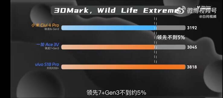 Auf der GPU-Seite sieht es jedoch etwas anders aus. Das Xiaomi Civi 4 Pro mit dem Snapdragon 8s Gen 3 erreicht im 3DMark Wild Life Extreme eine Punktzahl von 3.192. Der Snapdragon 7+ Gen 3 im OnePlus Ace 3V kommt auf solide 3.045 Punkte, was einer Unterlegenheit von rund 5% entspricht. Ein ähnliches Bild ergibt sich beim AnTuTu Benchmark, wo der Snapdragon 8s Gen 3 mit 496.235 Punkten gegenüber dem Snapdragon 7+ Gen 3 mit 490.115 Punkten abschneidet.