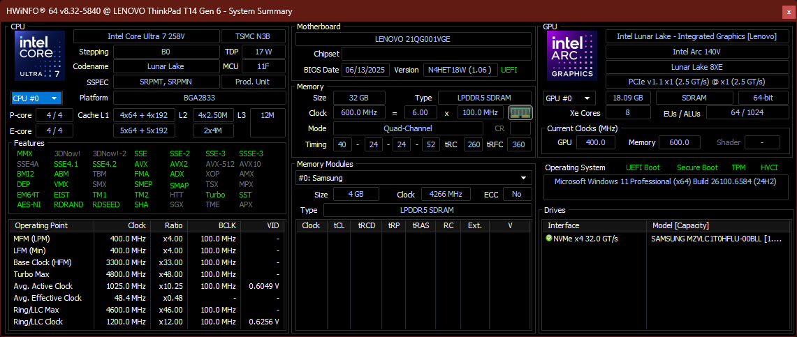 | Lenovo ThinkPad T14 Gen 6 21QG001VGE Intel Core Ultra 7 258V ⎘ Intel Arc Graphics 140V ⎘ 32 GB RAM, 1024 GB SSD | Amazon: 1.914,90 € Bestpreis 1709.63€ minaxum.it 2. 1738.53€ playox.de 3. 1738.54€ office-partner.de | 1.5 kg | 22 mm | 14.00" 1920x1200 162 PPI IPS LED | |
