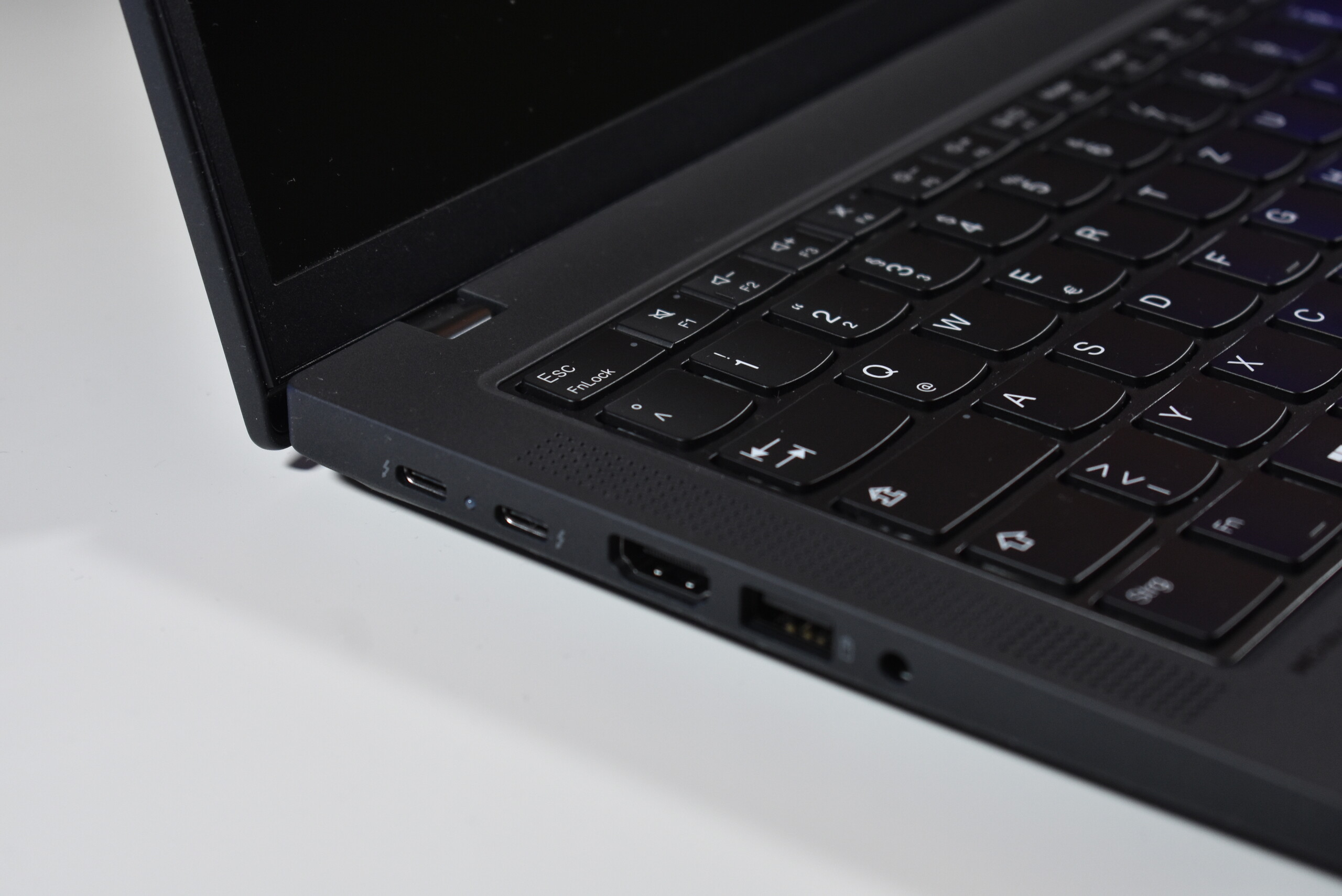 Lenovo bietet eine ausgewogene Auswahl an Anschlüssen, mit zwei Thunderbolt-4-Ports, HDMI und zwei USB-A Ports, sodass die Nutzerinnen und Nutzer sowohl alte Ports und moderne Funktionen haben. Darüber hinaus wird sich der RJ45-Ethernet-Anschluss für Systemadministratoren und Netzwerktechniker als sehr nützlich erweisen.