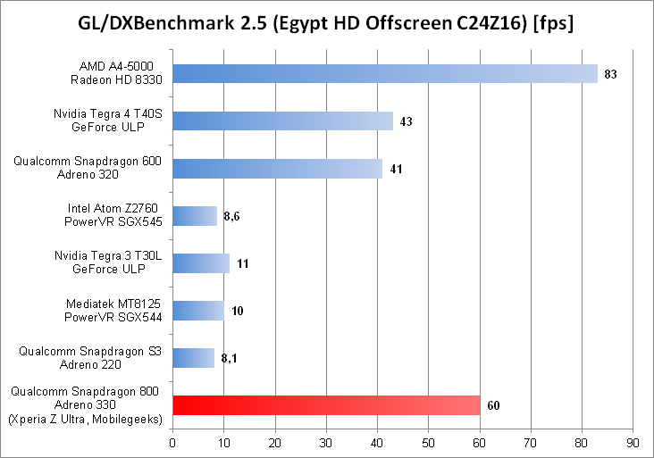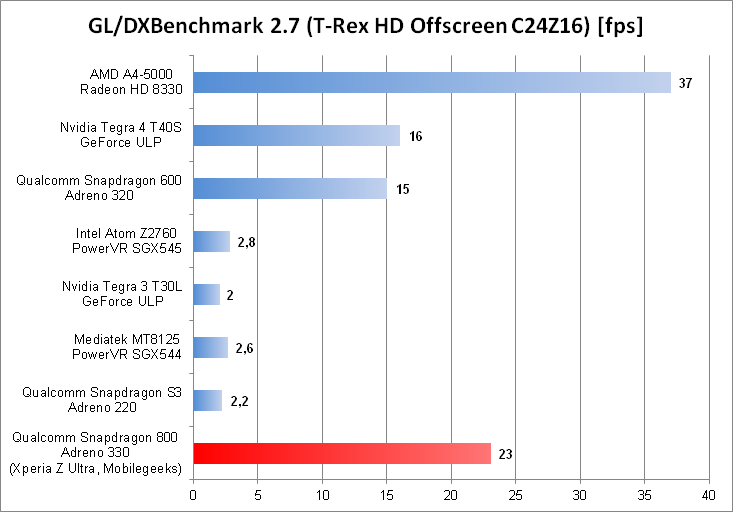 Ergänzung vom 14.08.2013: Den Kollegen von Mobilegeeks.de ist es gelungen, ein Sony Xperia Z Ultra mit Qualcomms neuem Snapdragon 800 zu ergattern und einige Benchmarks durchzuführen. Vor allem die stark aufgebohrte Adreno 330 zeigt sich von ihrer besten Seite und weist sowohl ihren Vorgänger als auch das Tegra-4-Tablet in die Schranken.