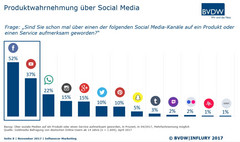 Viele Unternehmen nutzen die Reichweite der sozialen Netzwerke als sogenanntes Influencer-Marketing. Wie eine aktuelle Studie von Goldmedia im Auftrag des Bundesverbands Digitale Wirtschaft (BDVW) gemeinsam mit Influry herausgefunden hat, sind bereits 68 Prozent der deutschen Onliner über Social Media auf ein Produkt aufmerksam geworden. Facebook (52 %) und YouTube (37 %) sind die wichtigsten Social-Media-Kanäle. WhatsApp (22 %) folgt auf Platz 3.