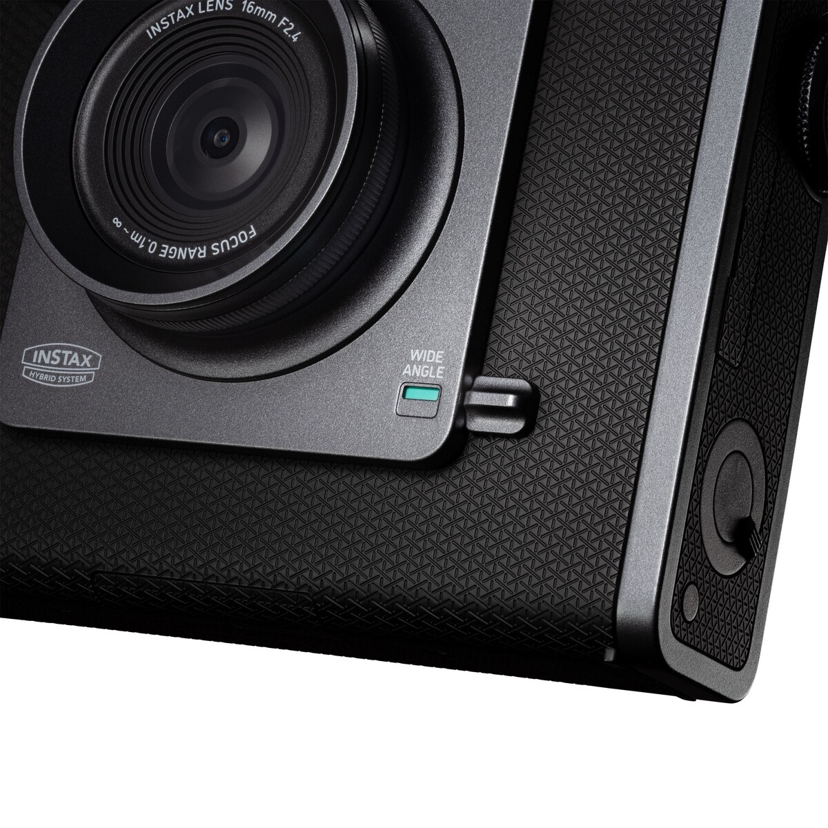 Da die Kamera digital ist, muss nicht jedes Foto gedruckt werden, das aufgenommen wird, während auch Bilder von einem Smartphone per Bluetooth zur Kamera übertragen und gedruckt werden kann. Eine Akkuladung soll reichen, um 100 Bilder zu drucken. Die Instax Wide Evo besitzt ausreichend Speicher, um 45 Fotos direkt auf der Kamera zu speichern, durch einen microSD-Kartenleser kann der Speicher erweitert werden. Fujifilm hat noch keine näheren Details zum verbauten Sensor bestätigt, die winzige Frontlinse des 16 mm f/2.4 Objektivs zeigt aber, dass ein recht kleiner Sensor verbaut wird.