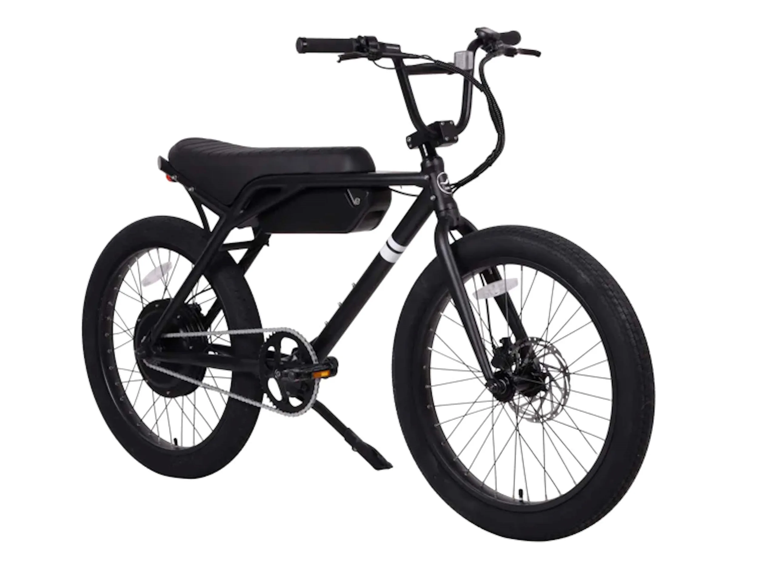 Eine Gangschaltung ist nicht verbaut, dementsprechend ist für einen bequemen Betrieb insbesondere bei Anstiegen die Nutzung des Motors auch nötig. Sowohl der Rahmen als auch die Gabel bestehen aus Aluminium, das Gewicht wird mit knapp 26 Kilogramm angegeben. Aufgezogen sind 24 Zoll große Reifen von Innova. Diese sind 3 Zoll breit. Die hydraulischen Scheibenbremsen stammen von Tektro.