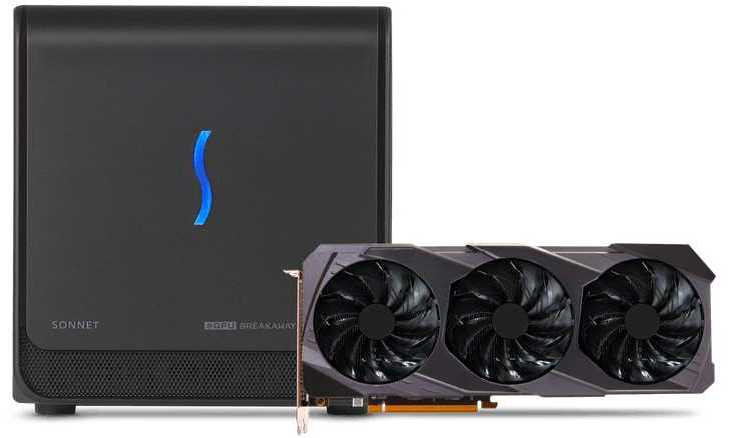Diese Bundles enthalten eine AMD Radeon RX 6900 XT GPU-Karte und eins von Sonnets Thunderbolt GPU PCIe-Kartenerweiterungssystemen. Die eGPU Breakaway Box 750ex verfügt zudem über einen integrierten Anschluss-Hub für USB-Geräte und Ethernet-Konnektivität. Die Systeme sind macOS- und Windows-kompatibel und mit allen Computern einsetzbar, die Thunderbolt 4- oder Thunderbolt 3-Anschlüsse besitzen.