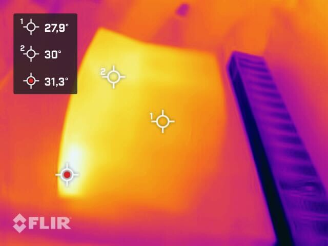 Da der Smartspeaker das Netzteil, Verstärker und auch die CPU beinhaltet, ist auch die Hitzeentwicklung nicht uninteressant. Bei 23°C Umgebungstemperatur messen wir knapp 38°C am Hotspot auf der unteren Vorderseite. Dies ist schon merklich warm, aber noch weit entfernt von kritischen Oberflächentemperaturen.
