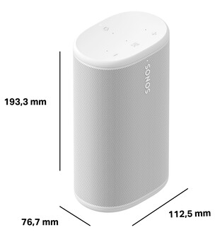 Dieses bietet Platz für leistungsstärkere Lautsprecher und einen größeren Akku. Konkret bewirbt Sonos eine Akkulaufzeit von bis zu 24 Stunden. Geladen wird wahlweise über USB-C oder aber auf der mitgelieferten drahtlosen Ladestation. Sonos macht keine näheren Angaben zu den verbauten Treibern oder Verstärkern, verspricht aber raumfüllenden Stereo-Klang mit kraftvollen Bässen. Mit Maßen von 19,2 x 11,2 x 7,7 Zentimetern bei einem Gewicht von 1,3 Kilogramm wiegt Sonos Play etwa das Dreifache des Sonos Roam 2.