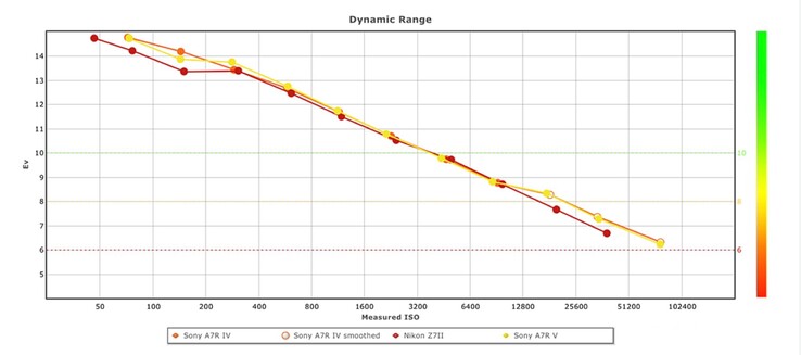 Laut der Messungen von DxOMark liefert der Sensor bei ISO 3.200 einen Dynamikumfang von brauchbaren 10,5 Blendenstufen und eine Farbtiefe von 17 bits, bei ISO 102.400 sind Fotos mit einem Dynamikumfang von 6 Blendenstufen und einer Farbtiefe von 11 bits nur noch im Notfall brauchbar.