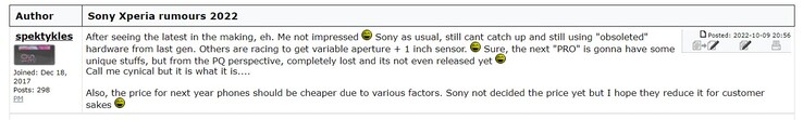 Bisher gingen Informanten etwa aus dem berühmt-berüchtigten Esato-Forum noch von einem Launch im November aus, mit Verfügbarkeit im nächsten Jahr. 2023 wird mit Sicherheit auch die fünfte Xperia 1-Generation auf den Markt kommen und von der werden ja auch wahre Wunderdinge erwartet, zuletzt etwa variabler optischer Zoom mit einem deutlich größeren Brennweitenbereich. Laut einem unbekannten Tippgeber aus dem weitläufigen Weibo-Netzwerk (via Reddit-Kommentator/Sumahodigest) soll dieses Xperia 1 Mark V "mehr Kameras an der Front aufweisen und weniger an der Rückseite", was eine sehr ungewöhnliche Ansage ist, sofern man nicht an die "Micro-Hole-Kamera-Gerüchte" denkt, die seit Jahren immer wieder im Zusammenhang mit einem Xperia-Phone aufpoppen. Last but not least wurde im Esato-Forum zuletzt auch darüber spekuliert, dass das Xperia 1 V im nächsten Jahr etwas günstiger starten könnte, ohne allerdings Beweise hierfür vorzulegen.