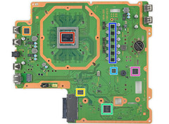 Die Spezifikationen der im Teardown zerlegten neuen Sony-Power-Spielkonsole listet iFixit wie folgt: 8-Kern-CPU AMD "Jaguar" 64-Bit-CPU @2,1 GHz, AMD Radeon basierte GPU (4,2 TFLOPS), 8 GB GDDR5-RAM plus 1 GB DRAM, 1 TB HDD, WLAN 802.11 a/b/g/n/ac, GBit-Ethernet, Bluetooth 4.0 (LE) und ein BD-/DVD-Laufwerk (Blu-ray 6x CAV, DVD 8x CAV). Das alles eingepackt ein PS4-Gehäuse mit einem zusätzlichen Stockwerk.