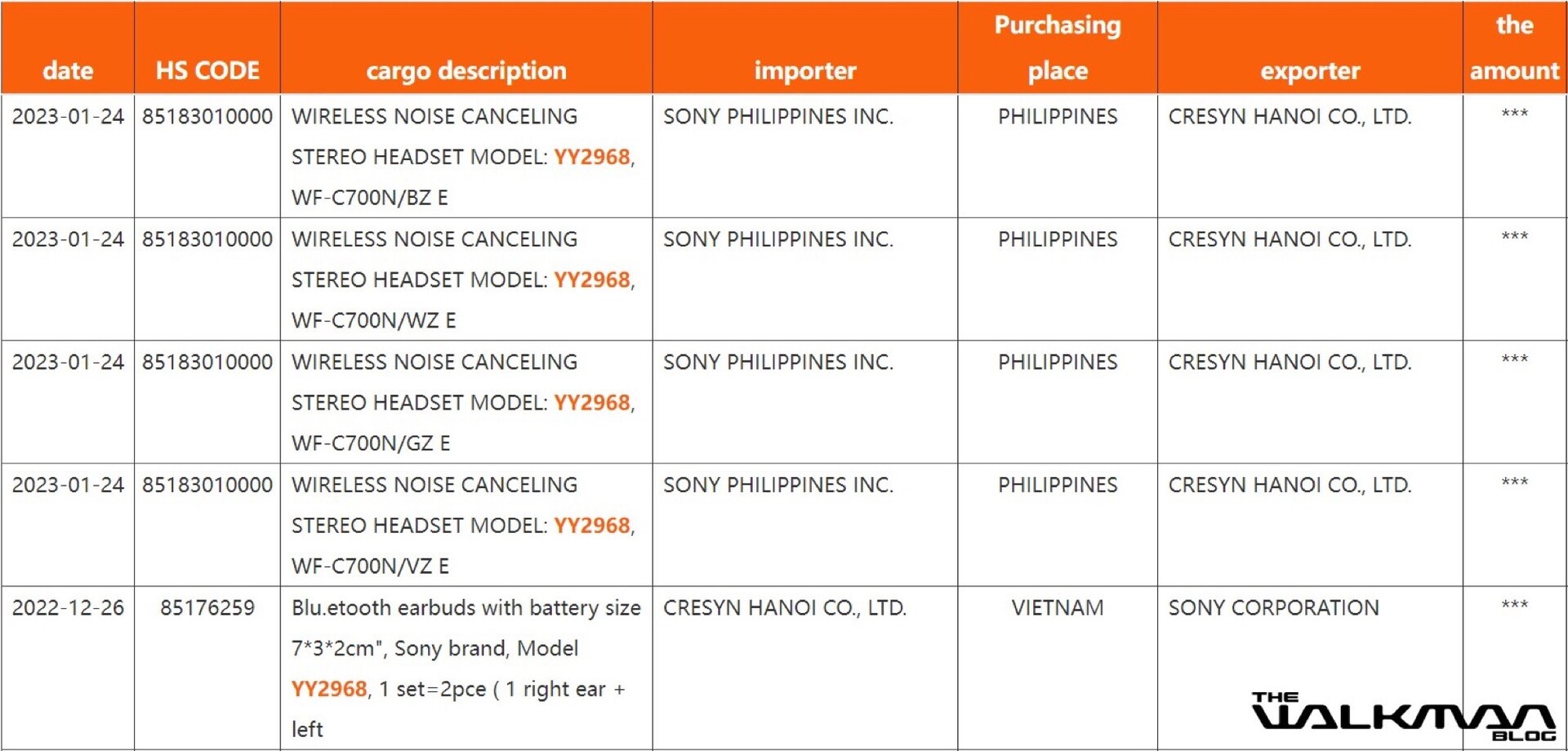 Import-Dokumente verraten nicht nur die Bezeichnung der komplett drahtlosen Ohrhörer, die zuvor nur unter ihrer Modellnummer YY2968 bekannt waren, es ist auch die Rede von einem "Wireless Noise Canceling Stereo Headset", was darauf hinweist, dass die Ohrhörer eine aktive Geräuschunterdrückung (ANC) unterstützen – ein Feature, das beim Vorgängermodell gefehlt hat. Die Sony WF-C700N werden in den Farben Schwarz, Weiß, Grün und Violett gelistet.