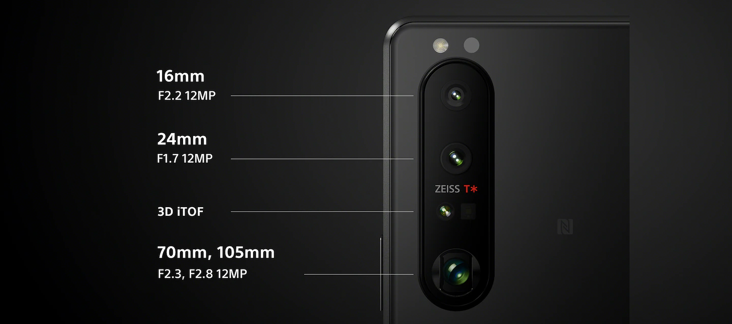 Das Sony Xperia 5 III kommt mit 8 GB und 128 GB Speicherplatz daher. Ausgestattet ist es mit einem 6,1 Zoll großen FHD+-AMOLED-Display mit 120 Hz. Im Inneren werkelt der Qualcomm Snapdragon 888. Der Akku des Xperia 5 III fasst 4.500 mAh und lässt sich mit bis zu 30 Watt schnell laden. Dazu kommt eine Triple-Kamera aus drei 12 Megapixel Kameras mit Objektiven von Zeiss. Sie setzt sich aus einer Hauptkamera mit 1/1,7 Zoll großem Sensor, einer Ultraweitwinkel-Kamera mit 1/2,6 Zoll Sensor und einer Brennweite von 16 mm (Kleinbild-Äquivalent) sowie einer Tele-Kamera mit 1/2,9 Zoll Sensor zusammen.