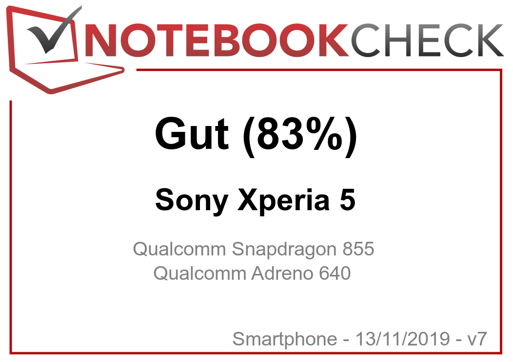 | 83.3 % v7 (old) | 11 / 2019 | Sony Xperia 5 SD 855, Adreno 640 | 164 g | 128 GB UFS 2.1 Flash | 6.10" | 2520x1080 | |
