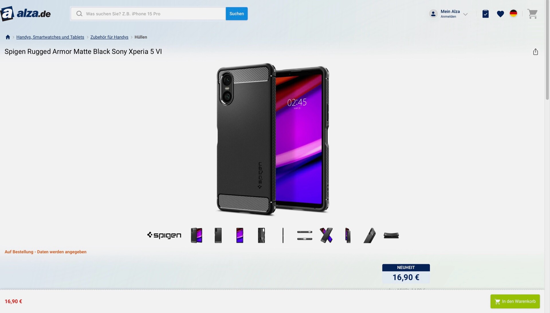Nachdem schon im März erstmals eine Schutzhülle für das Sony Xperia 5 VI gesichtet wurde, listet der Onlineshop Alza.de nun bereits eine Spigen Rugged Armor Schutzhülle für das Sony Xperia 5 VI für 16,90 Euro inklusive Mehrwertsteuer. Die Beschreibung der Schutzhülle bestätigt, dass das Xperia 5 VI drahtlos aufgeladen werden kann, liefert ansonsten aber kaum Details zum Smartphone.