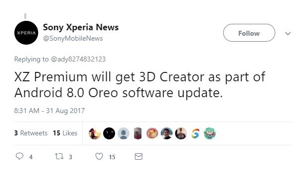 Da das im Frühjahr vorgestellte Xperia XZ Premium ebenfalls über den gleichen Snapdragon 835-Prozessor und Sonys Motion Eye-Kamera verfügt, wurde der japanische Hersteller offenbar mit einigen Anfragen interessierter XZ Premium-Besitzer konfrontiert. Via Twitter stellte Sony kürzlich klar, dass auch das 4K-Flaggschiff die 3D Creator-App im Zuge des geplanten Android Oreo-Updates bekommen und dann mit dem Xperia XZ1 gleichziehen wird. Auch einige nicht näher erläuterte Kamera-Verbesserungen sollen Teil dieses Updates sein.