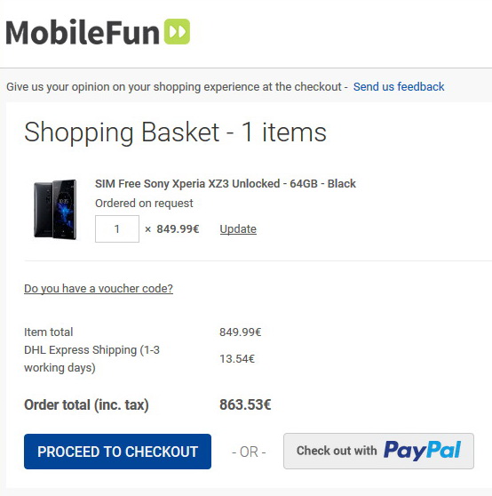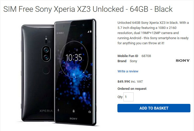 Das als Xperia XZ3 bezeichnete Smartphone wird dort in der Farbe Schwarz mit 6 GB Arbeitsspeicher, 64 GB Systemspeicher, einem 5,7 Zoll großen Display mit 2.160 x 1.080 Pixeln, Dual-Hauptkamera mit 19/12 MP zu einem Preis von knapp 850 Euro angeführt. Angetrieben wird das "Sony Xperia XZ3" von einem Qualcomm Snapdragon 845 SoC. Vorne ist eine 13-MP-Selfiecam an Bord, der Akku wird mit einer Kapazität von 3.240 mAh angegeben.