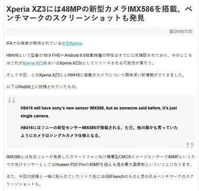 Kaum ist die Katze mit Sonys IMX586 48-MP-Kamerasensor für Smartphones aus dem Sack, taucht auch schon auf wundersame Weise passend dazu wieder das mysteriöse Sony-Smartphone mit der Modellbezeichnung H8416 im GFXBench auf, bei dem es sich angeblich um das Xperia XZ3 handeln soll.