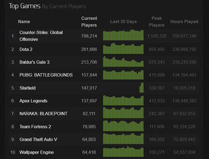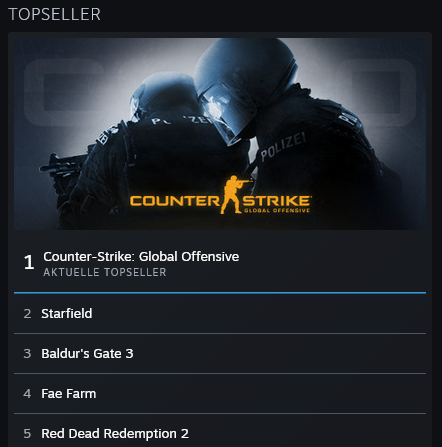 Der Games-Markt befindet sich derzeit in einer ruhigen Phase. Vor dem Release zahlreicher Herbstkracher wie EA Sports FC 24 oder Super Mario Bros. Wonder zocken die deutschen Gamer neben den aktuellen Top-Games wie Armored Core 6 und Diablo 4 auf dem PC das Singleplayer-SciFi-RPG Starfield. Auf Steam rangiert der SciFi-Action-RPG Starfield von Bethesda aktuell hinter Baldur's Gate 3 (3) auf Position 5 mit fast 150.000 über Steam eingeloggten Spielern. Bei den Topsellern schafft es Starfield sogar auf Platz 2, vor Larian Studios' Baldur's Gate 3.