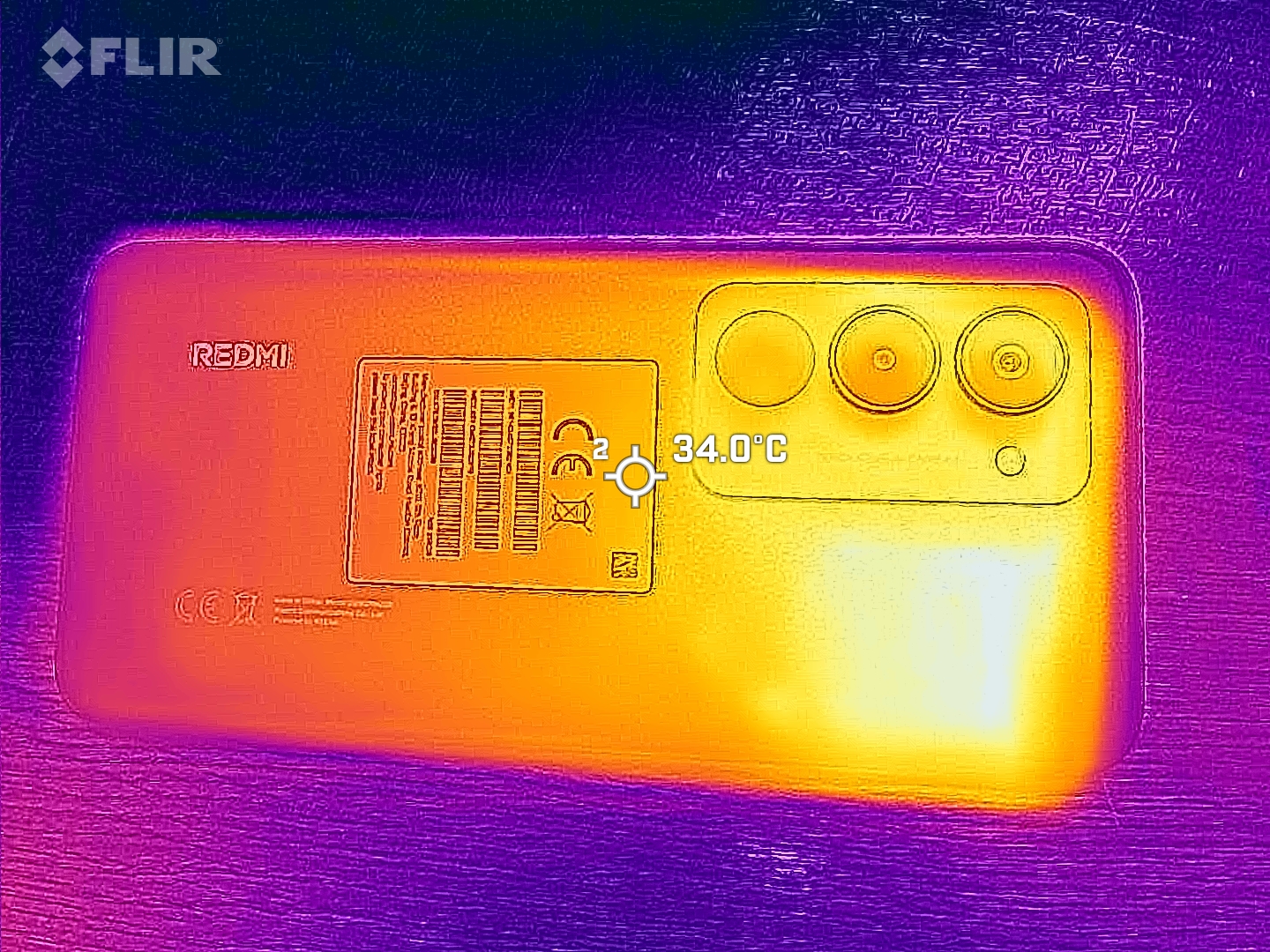 Das Redmi 15 fühlt sich auch unter Dauerlast nicht unangenehm warm in den Händen an, denn seine Oberflächen-Temperaturen kommen im Test nicht über 41 °C hinaus.