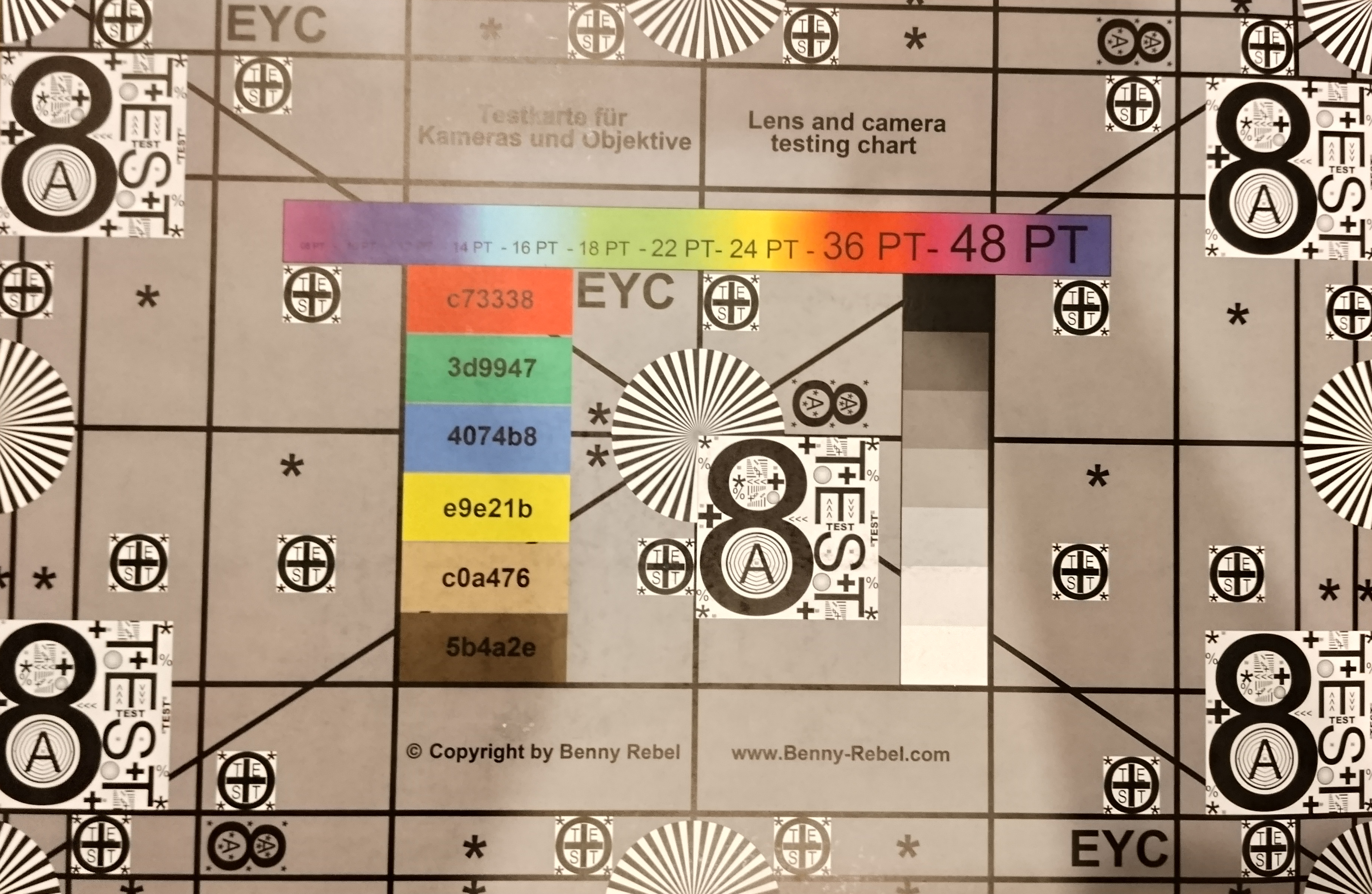 | Colorchecker dE 2000 max. * | 4.77 | 6.77 -42% | 5.49 -15% | 6.77 -42% | 8.64 -81% |