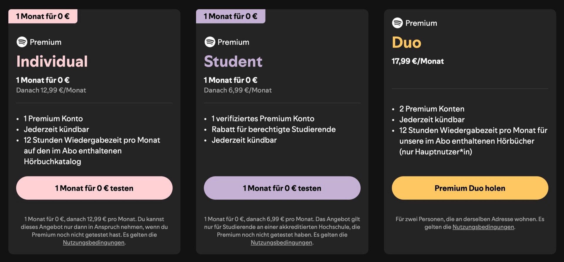 - Spotify Premium Student: 6,99 Euro (statt 5,99 Euro, +17%)