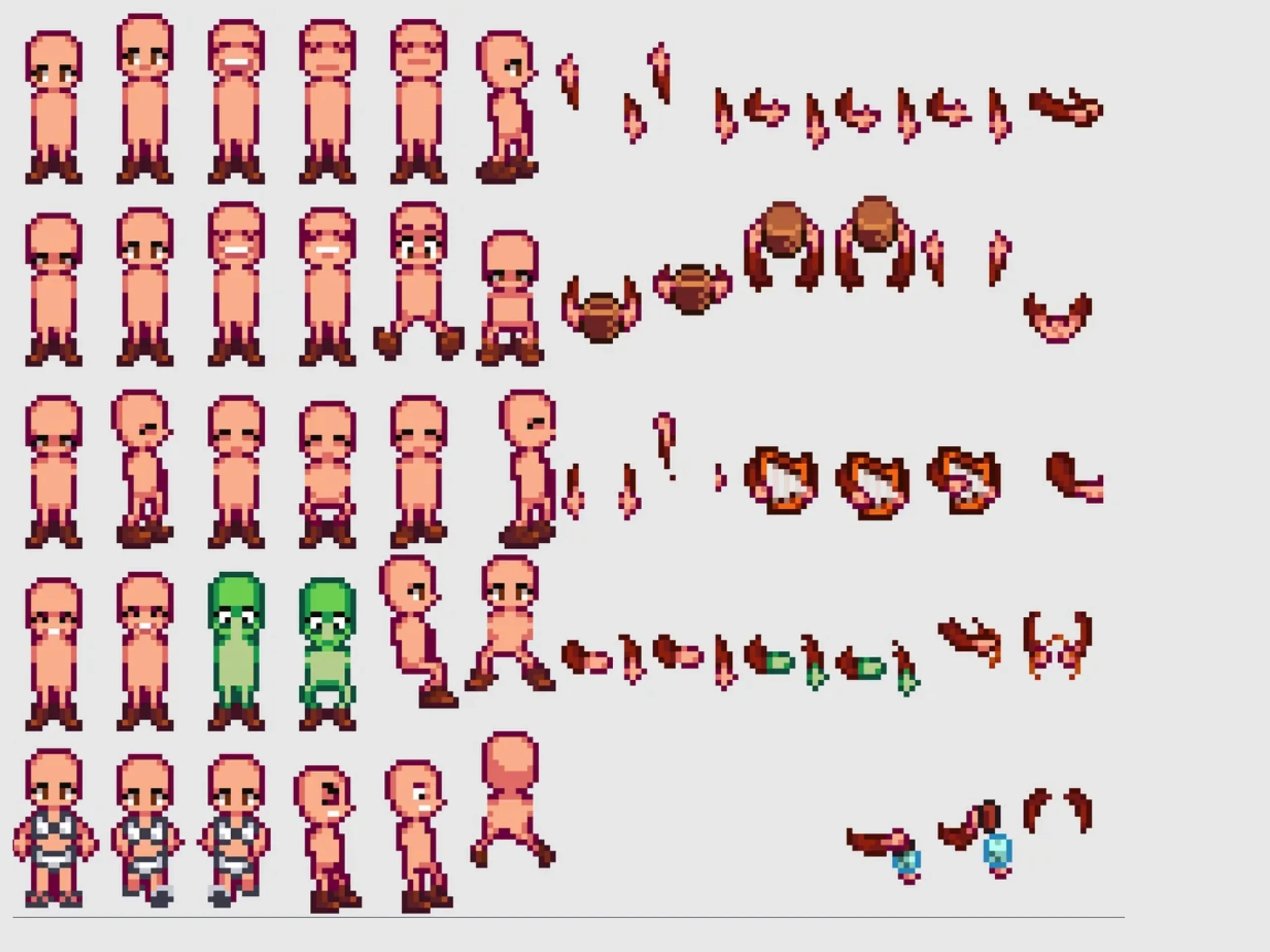 Was der Fan gefunden hatte, waren mehrere völlig nackte Charakter-Sprites, die meist nichts als Schuhe trugen – häufig auch ohne Arme und Haare. Die Figuren stehen zudem in bekannten Posen – etwa der „Po ausstrecken“-Schwertanimation, traurigen oder erschrockenen Gesichtsausdrücken oder sogar Bürgermeister Lewis’ berühmtem Überraschungssprung in seiner untexturierten Rohfassung. Einige Modelle sind grün eingefärbt, dazu tauchen einzelne abgetrennte Arme und ungewöhnliche Objekte wie ein Wikingerhelm auf.
