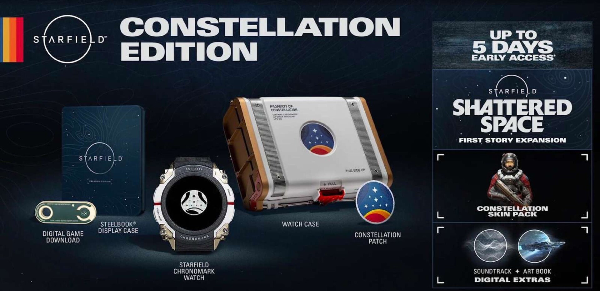 Die Chronomark Smartwatch ist ausschließlich als Teil der sogenannten Starfield Constellation Edition erhältlich. Diese enthält neben der Smartwatch das Spiel als digitaler Download, ein Steelbook, die Sammler-Box, einen Constellation-Aufnäher, den digitalen Soundtrack, ein digitales Artbook, die erste Story-Erweiterung des Spiels und die Möglichkeit, Starfield fünf Tage vor dem offiziellen Launch zu spielen. Diese Version kann bereits bei Amazon für rund 270 Euro vorbestellt werden, die Auslieferung beginnt am 1. September. Das Paket enthält sowohl die Xbox- als auch die Windows-Version von Starfield.