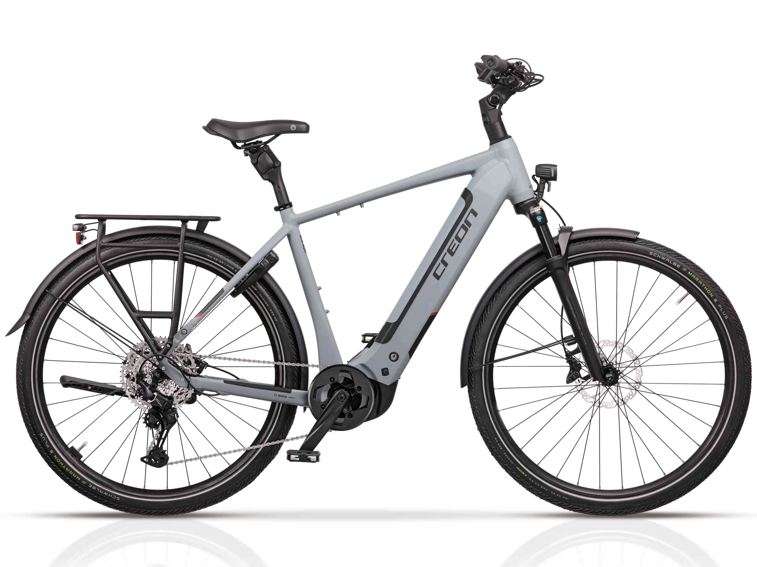 Creon bietet mit dem Nova d.7 ein gut ausgestattetes Elektrofahrrad an, wobei dieses mit einem starkem Mittelmotor und auch einer großen Akkukapazität kommt. Konkret kommt ein Bosch Performance Line PX-Mittelmotor mit einem maximalen Drehmoment von 85 Nm, genutzt wird ein Bosch PowerTube-Akku mit einer Kapazität von 800 Wh. Der Akku kann entnommen werden, findet bei der Fahrt aber seinen Platz aber im Unterrohr und liegt dementsprechend nicht etwa auf dem Rahmen aus - das ist auch ein optischer Vorteil.
