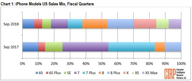 Die Marktforscher von Cirp haben herausgefunden, dass die neuen Modelle iPhone Xs und iPhone Xs Max bei den US-Kunden sehr gut ankommen. Zum Ende vergangenen Quartals brachten es die iPhone Xs und Xs Max Handys jeweils auf einen Anteil von rund 8 Prozent bei den US-iPhone-Verkäufen. Für das iPhone X verzeichneten die Analysten einen Anteil von 14 Prozent. iPhone 8 und iPhone 8 Plus waren mit 16 % respektive 17 Prozent in den Vereinigten Staaten die populärsten iPhone-Modelle.