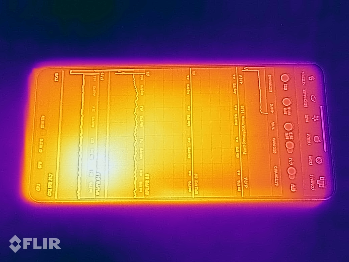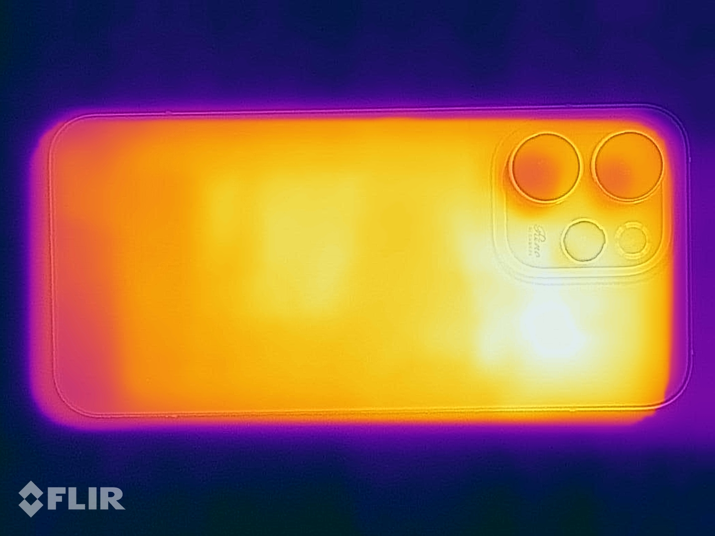 (±) Auf der Unterseite messen wir eine maximalen Wert von 44.5 °C (im Vergleich zum Durchschnitt von 34 °C).