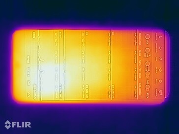 (±) Auf der Unterseite messen wir eine maximalen Wert von 43.4 °C (im Vergleich zum Durchschnitt von 34 °C).