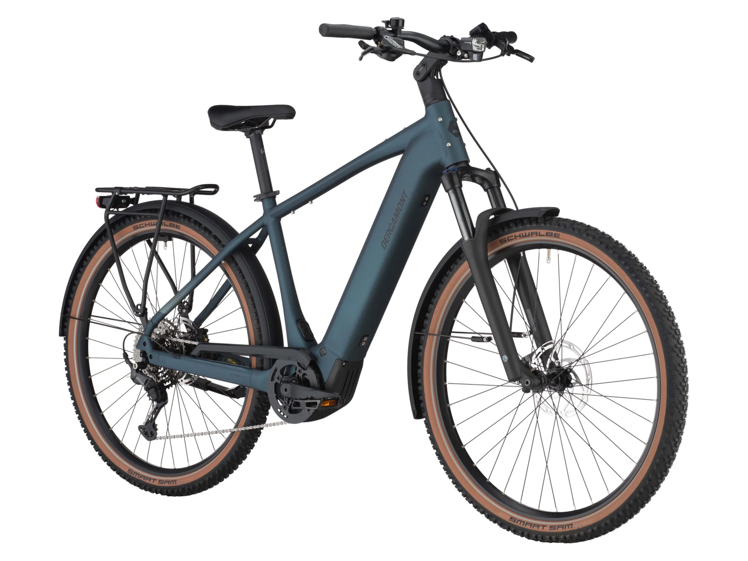 Vorne und hinten wird mit hydraulisch agierenden Tektro HD-M275-Bremsen verzögert, wobei diese jeweils vier Bremskolben mitbringen. Angegeben wird ein Gewicht von rund 30 Kilogramm. Wenig überraschend kommt ein aus Aluminium gefertigter Rahmen zum Einsatz. Es ist eine Suntour XCM34 DS-Federgabel verbaut, auf einen Dämpfer verzichtet Bergamont wie bei einem Trekking-E-Bike durchaus üblich.