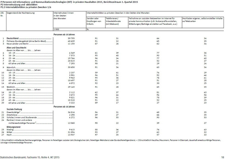 Nach Angaben des Statistische Bundesamts war das Nutzungsverhalten allerdings stark abhängig vom Alter: Besonders beliebt ist diese Art der Kommunikation bei jungen Menschen: 45 Prozent der Internetnutzerinnen und -nutzer zwischen 10 und 24 Jahren telefonierten 2015 über das Web. Bei den 25- bis 54-Jährigen waren es laut der Bundesoberbehörde 31 Prozent. Von den Usern ab 55 Jahren nahm dagegen nur etwa jeder Fünfte (22 Prozent) diese technischen Möglichkeiten in Anspruch.