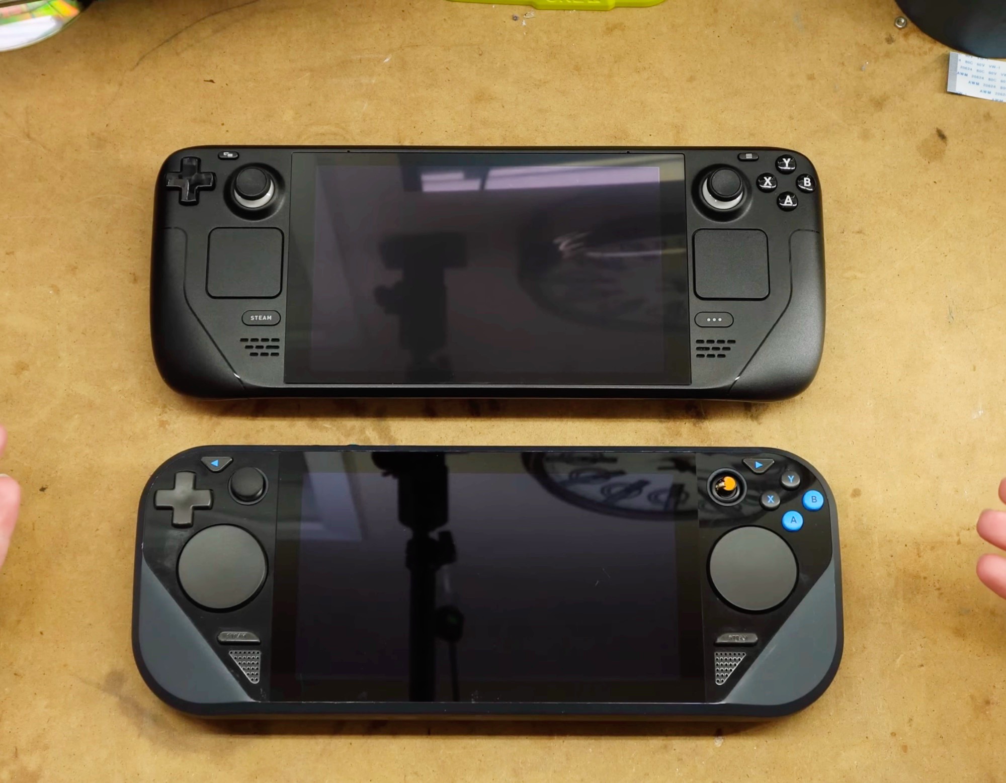 Während die Tastenbelegung und die Maße schon praktisch mit dem finalen Steam Deck übereinstimmen, gibt es gravierende Design-Unterschiede, denn der Prototyp nutzt mehrere blaue Buttons, runde Trackpads und kürzere Analog-Sticks, die eher an eine PlayStation Vita denn an einen richtigen Controller erinnern. Die schwarz glänzende Vorderseite sieht schick aus, zieht aber Fingerabdrücke geradezu magisch an. Auch die Schulter-Buttons, der microSD-Kartenleser und die rückseitigen Buttons sind schon vorhanden.