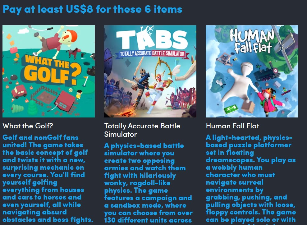 Die neueste Humble-Bundle-Sammlung ist da und bringt 9 Spiele mit. Diese Titel bieten ein Spielerlebnis mit geradezu außerweltlicher Physik – eine Möglichkeit, der langweiligen Physik unserer Welt zu entfliehen. Das Angebot ist nur für begrenzte Zeit verfügbar.