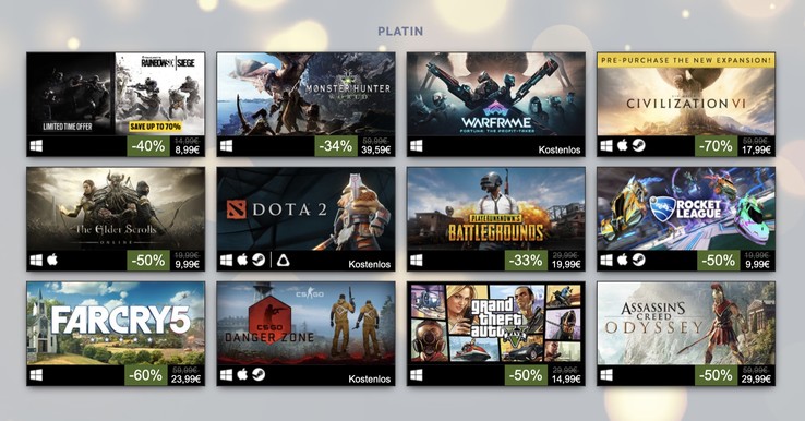 Die laut Bruttoumsatz erfolgreichsten Spiele der Plattform waren dieses Jahr folgende: