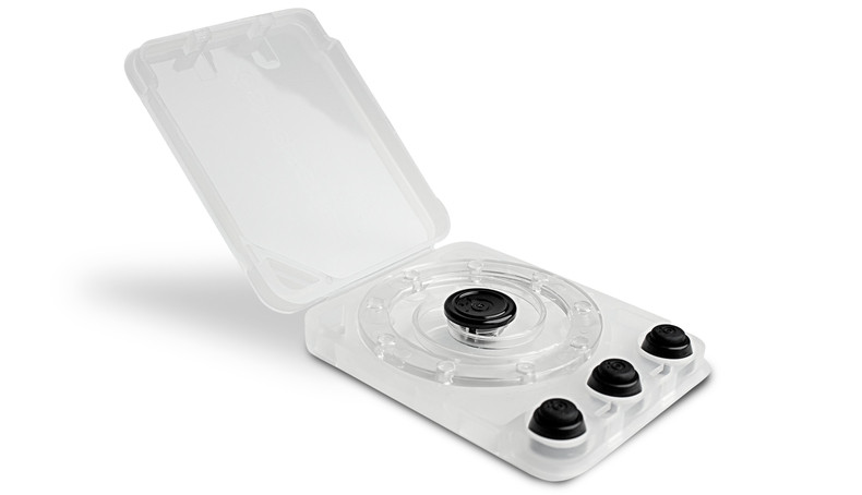 Im Paket von SteelSeries sind drei Tasten und ein Joystick enthalten, die in einer Schutzhülle aufbewahrt werden können. Anhand der leitfähigen Gummisaugnäpfe haften die Tasten auf dem Display. Die Bewegungen der Finger werden durch die Controls direkt auf das Display übertragen und der Joystick ermöglicht adäquate Richtungsbewegungen. Die neun Mini-Saugnäpfe sorgen für sicheren Halt.