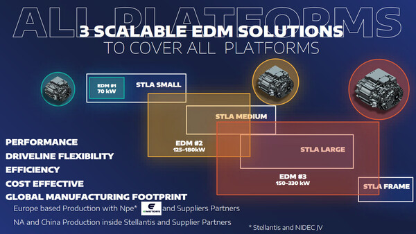 Die STLA Large E-Auto-Plattform von Stellantis ist eine der vier speziell auf batterieelektrische Autos (BEV) ausgelegten, flexiblen Fahrzeug-Plattformen. Die STLA Large-Plattform soll mit den ebenfalls von Stellantis entwickelten elektrischen Antriebsmodulen (EDMs) und modularen Batteriepacks eine elektrische Reichweite von bis zu 800 Kilometern bieten. Designer und Ingenieure haben die Möglichkeit, die Länge und Breite der Plattform sowie die Konfiguration des Antriebsstrangs flexibel anzupassen, um sie für spezifische Produktdesigns der E-Autos zu nutzen.
