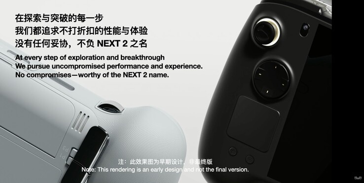 Ayaneo Next 2 bietet Platz für gleich zwei M.2-2280-SSDs, wodurch der Handheld mühelos mit 8 TB Speicher ausgestattet werden kann. Das Controller-Layout entspricht am ehesten einem Xbox-Gamepad, wobei der Ayaneo Next 2 ähnlich wie das Steam Deck zwei quadratische Touchpads besitzt. An der Rückseite sind vier Paddles zu finden, an der Unterseite ist ein Drehregler zu sehen, der möglicherweise zum Einstellen der Lautstärke genutzt wird.