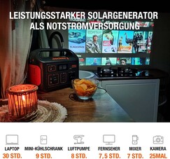Über eine 230V-Steckdose in der Gerätefront können konstant bis zu 500 Watt und in der Spitze bis zu 1.000 W abgerufen werden. Dies langt gerade beim mobilen Einsatz für viele Geräte wie Notebooks und Co. Zusätzlich stehen drei USB-A-Anschlüsse mit 5 V und 2,4 A sowie ein Autoanschluss mit 12 V und 10 A zur Verfügung.