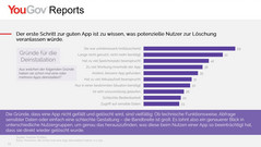 Viele Apps haben nur eine sehr kurze Lebensdauer auf deutschen Smartphones: Fast jeder Smartphone-Nutzer (89 Prozent) hat schon einmal eine App vom Mobiltelefon gelöscht. Die Gründe dafür sind vielfältig. Der am häufigsten genannte Grund für die Deinstallation einer App ist, dass die Anwendung enttäuschend bzw. uninteressant war (59 Prozent).