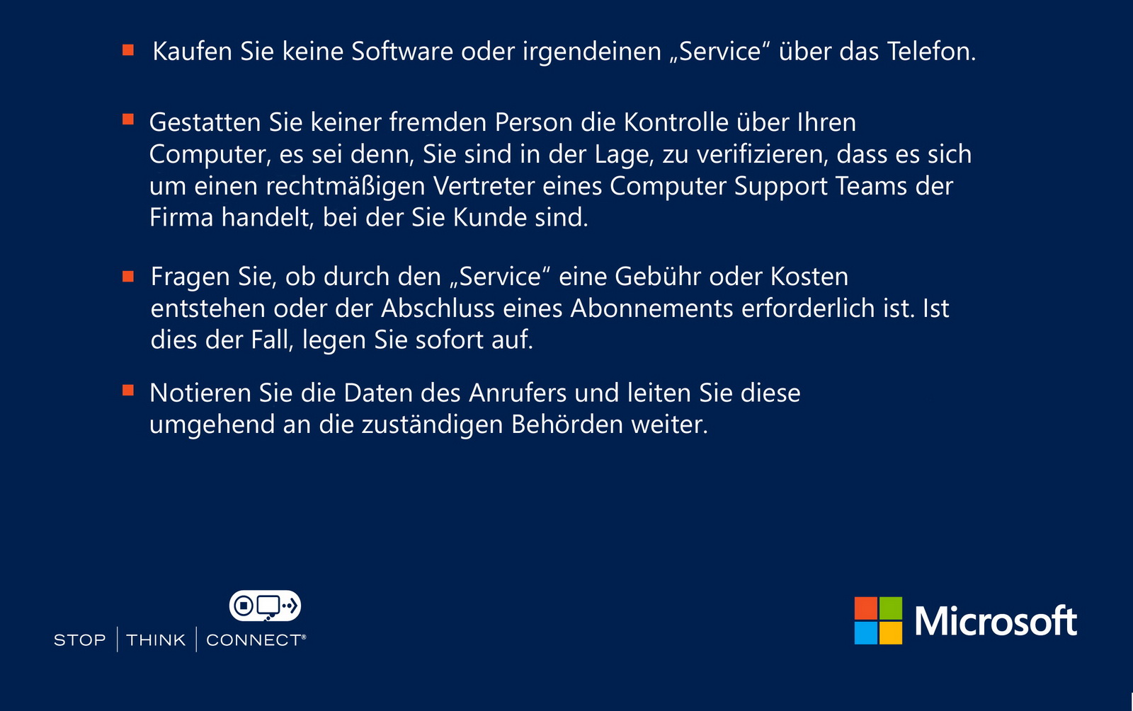 Microsoft warnt vor Betrugsmasche: In letzter Zeit kommt es wieder vermehrt zu betrügerischen Kontaktversuchen per Telefon, via E-Mail oder über Webseiten und Pop-ups. Die Betrüger und Cyberkriminellen geben sich als technische Supportmitarbeiter von Microsoft aus, verfolgen aber ausschließlich das Ziel, mobile Endgeräte und Rechner mit Schadsoftware zu infizieren und persönliche Daten von Nutzern für betrügerische Zwecke abzuschöpfen.
